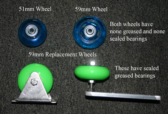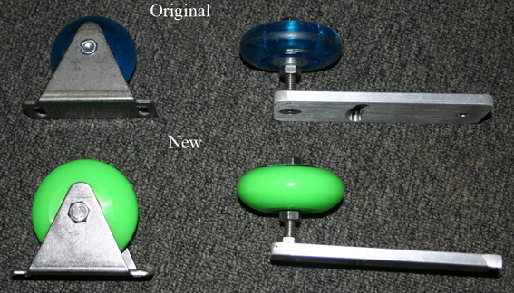 I talked to Dan at ED and he stated that they did not carry and different type of rollers for the ED's. He also stated that the rollers where skate type rollers. I did some checking on the net and found that the inline roller skate where the right type of wheels for the ED. I removed a set off of my dome and measured the rollers and brackets for the best fit. The base rollers where 51mm and the guide rollers where 59mm with 6mm mounting holes. I measured the base to see if I could use a little bit taller base roller and I figured that I could use the 59mm rollers on everything.